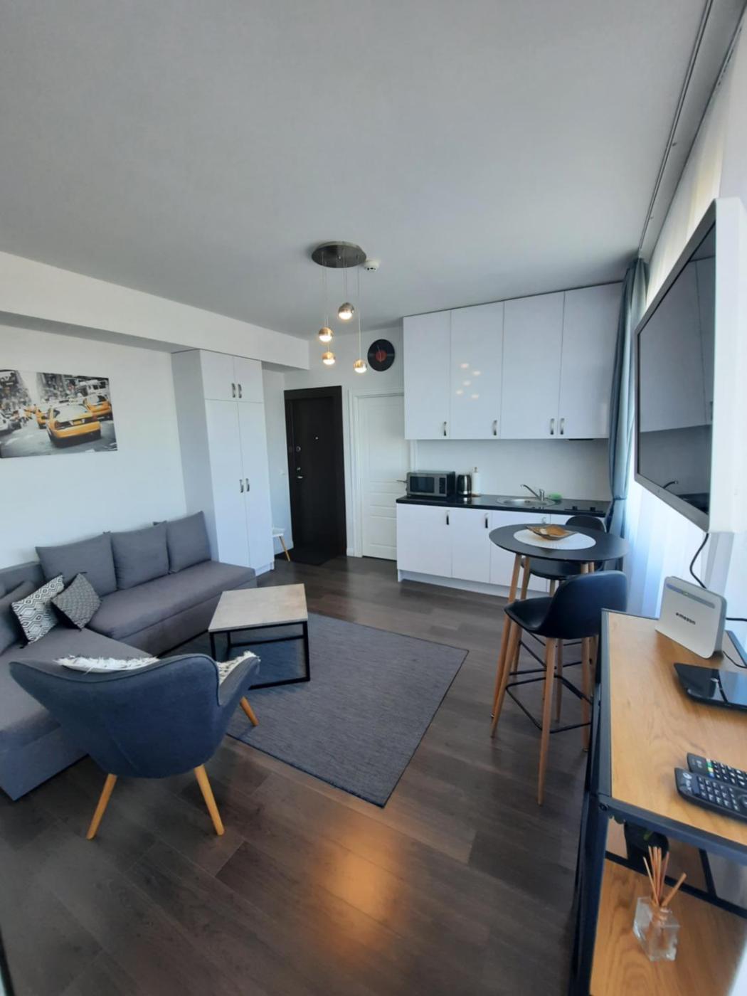 Studio Apartment. This apartment comes with 1 living room, 1 separate bedroom and 1 bathroom with a shower and free toiletries. Meals can be prepared in the well-fitted kitchen, which features a stovetop, a refrigerator, kitchenware and a microwave. Boasting a terrace with city views, this apartment also features a washing machine and a TV. The unit has 2 beds.